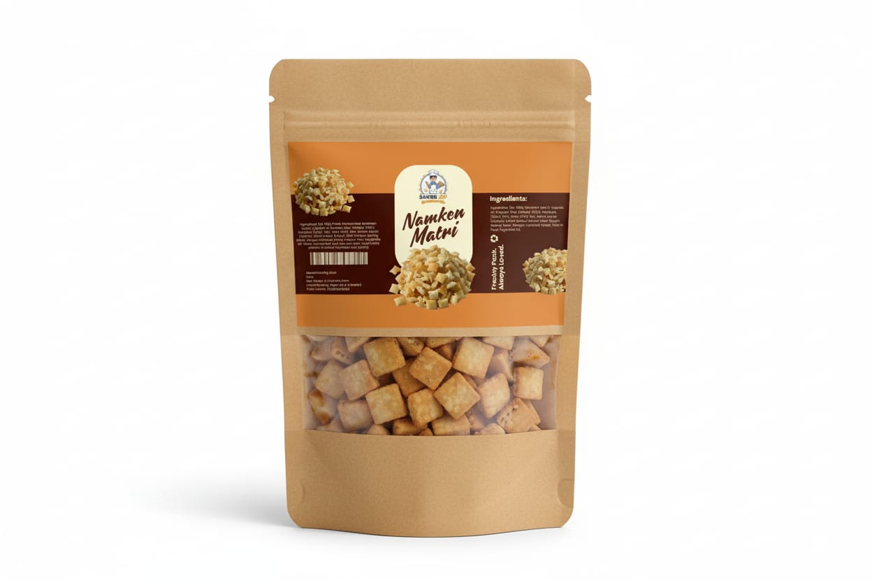 Namkeen Matri is a crispy, deep-fried snack made from refined wheat flour (maida), seasoned with a blend of spices such as ajwain (carom seeds), cumin, or black pepper, and sometimes enriched with ghee or oil for added flavor. The 200gm pack is ideal for small gatherings, personal snacking, or gifting during festivals like Diwali. Its compact size ensures freshness and convenience, with airtight packaging to retain crunchiness.